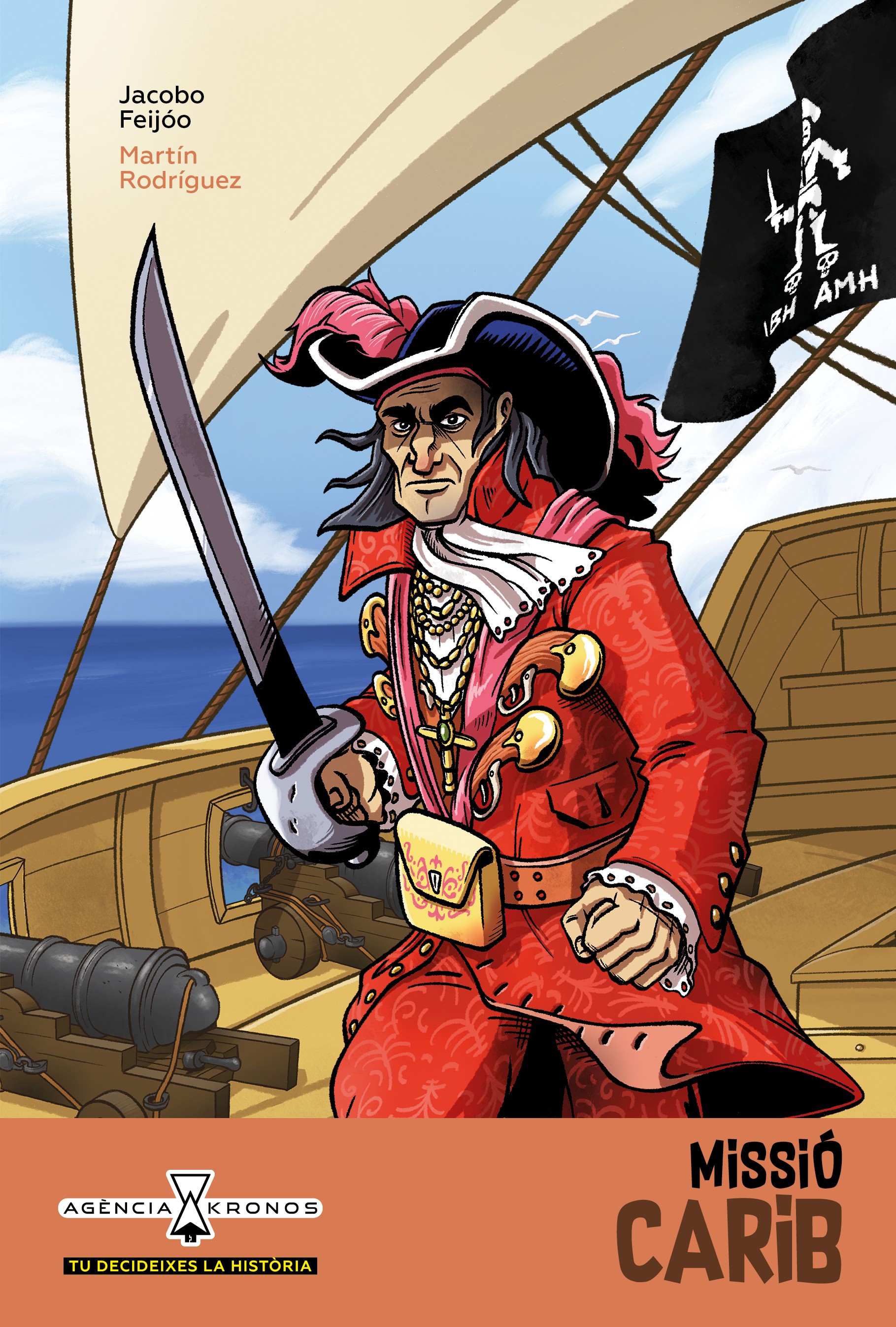 Els pirates eren ferotges i temuts. Entre ells, Roberts tenia fama de ser tan elegant com despietat. En la seua bandera onejaven unes sigles ben extranyes el significat de les quals es desconeix. Però tu pots resoldre el misteri. Demana a l'Agència Kronos que t’envie a la seua època i descobreix que s'amaga darrere de la bandera!