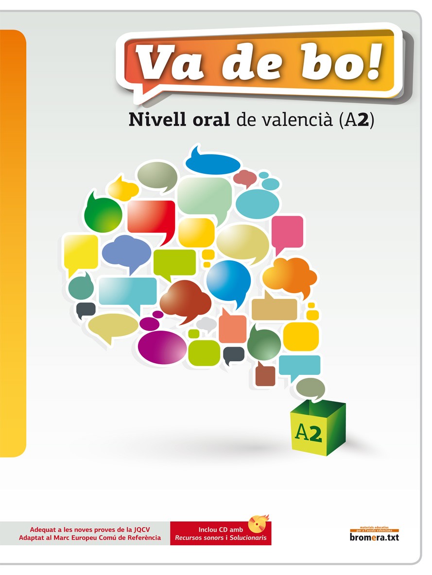 Va de bo! Nivell oral de valencià (A2) modernitza l’ensenyament del nivell bàsic de valencià. Basat en el treball de les quatre competències lingüístiques (comprensió oral i escrita i expressió oral i escrita), proporciona textos i àudios que reprodueixen situacions comunicatives versemblants en què es requereix un nivell de llengua de parlant bàsic. Tot configurat d’una manera amena que fomenta l’interés de l’aprenent i facilita la tasca del professorat, en el cas de les classes presencials.